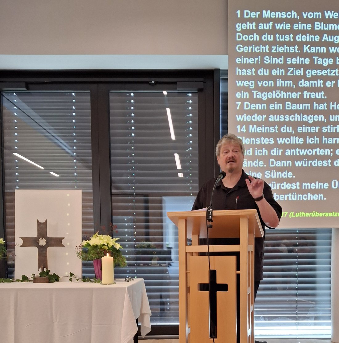 Prediger Markus Klein spricht zum Thema "Vom Klagen zum Loben".